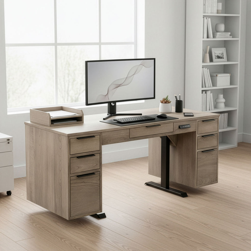 67¼"w x 27"d; Raises to 50¾" high